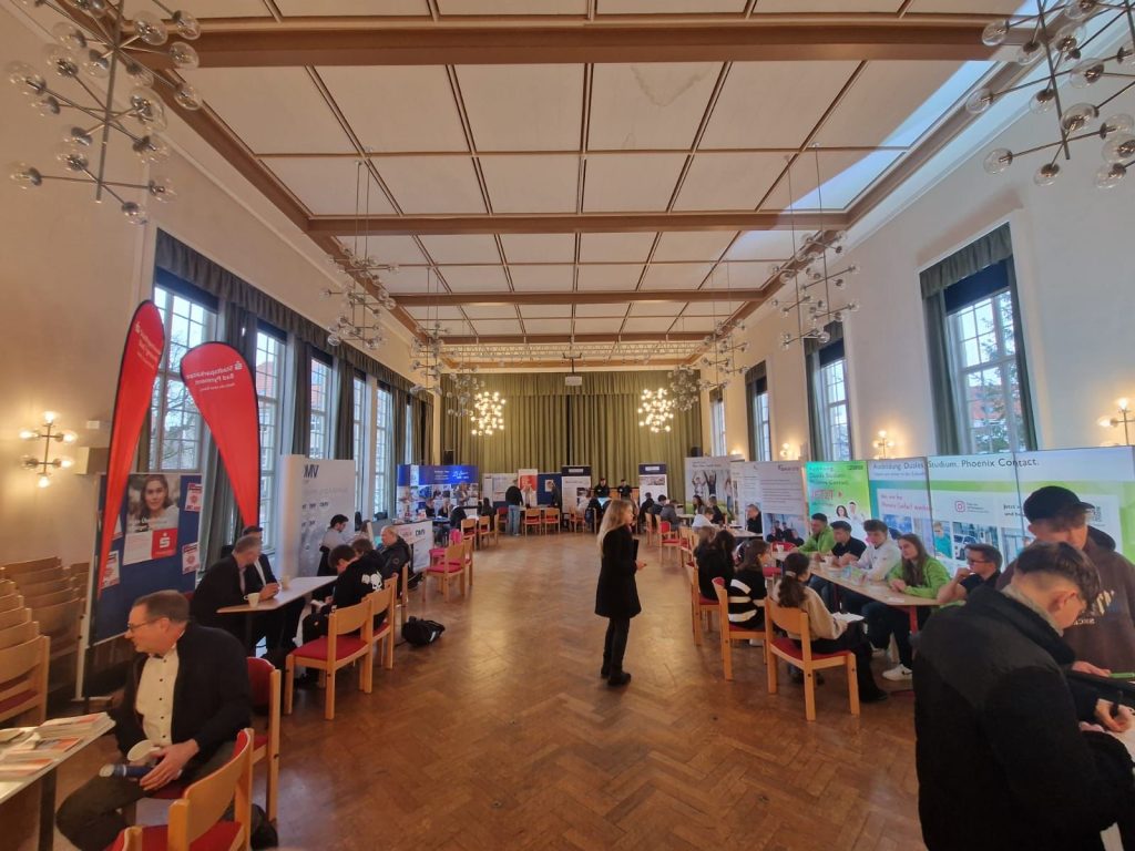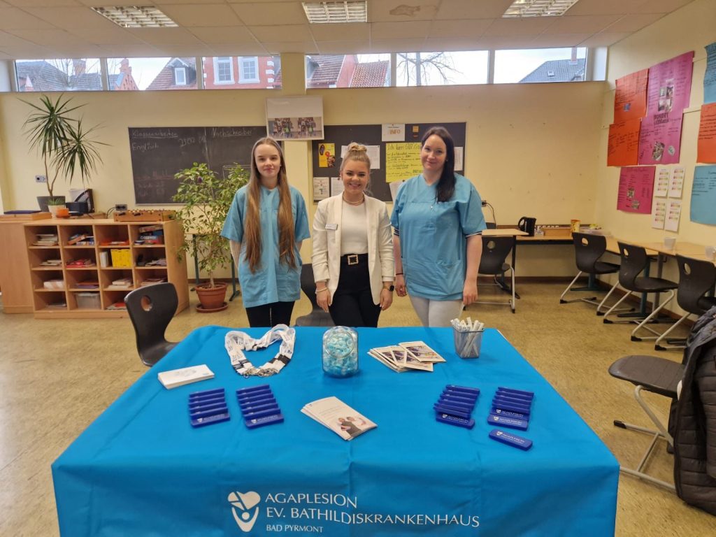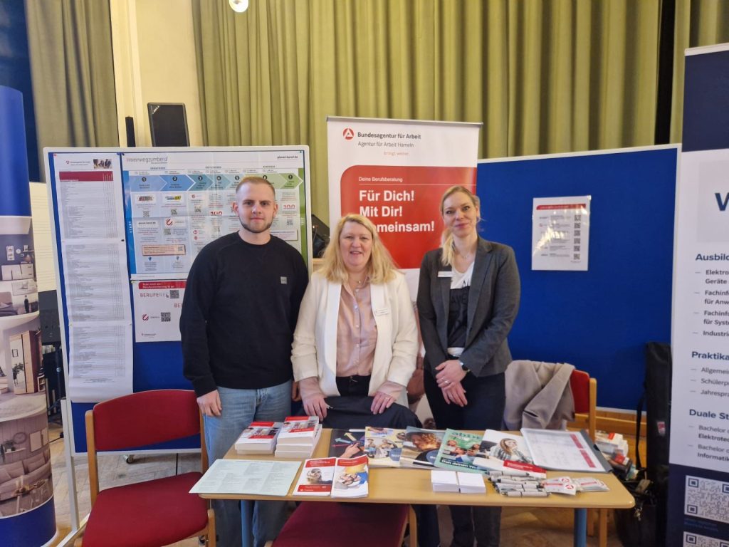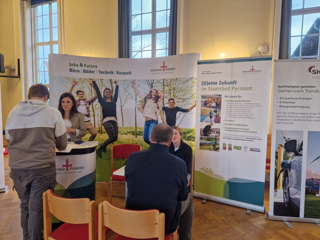 Am vergangenen Dienstag fand auf gemeinsame Einladung der Herderschule und der Max-Born Realschule die zweite Auflage des Berufsinformationstages statt. Erneut fanden viele namenhafte Firmen den Weg in die Aula und das Fachklassenhaus und nutzten es, sich den Schülerinnen und Schülern der Jahrgänge 8-10 zu präsentieren. Bürgermeister Klaus Blome sowie die Schulleitungen beider Schulen, Frau Wendeln-Henke und Herr Bux-Hoffmann, lobten in ihren Eröffnungsworten gleichermaßen das hohe Interesse und die gute Resonanz auf die Einladung verbunden mit der Aufforderung an die Schülerinnen und Schüler die Chancen für gute Gespräche zu nutzen. Dieser Aufforderung wurde nach einem ersten Feedback der Betriebe und der Schülerinnen und Schüler häufig nachgekommen, worüber sich die Organisatoren Anita Brockerhoff und Christian Wagner sehr freuten. Das Konzept einer klassischen Berufsmesse einmal umzukehren und die Betriebe in die Schule anstatt die Schülerinnen und Schüler zu den Betrieben zu bringen, baut die erste Hemmschwelle auf die Aussteller zuzugehen ab und ein gut organisierter Ablauf sorgt für gleichmäßige Besucherströme. Eine weitere Auflage der Veranstaltung ist somit sehr wahrscheinlich. Wenn die Organisatoren einen Wunsch frei hätten, dann vielleicht, dass auch lokale Handwerksbetriebe die Möglichkeit einer solchen Veranstaltung zukünftig nutzen, um sich zu präsentieren so Brockerhoff und Wagner einhellig. Über den Berufsinformationstag berichtete ebenfalls Radio Aktiv, der Beitrag ist unter folgendem Link abrufbar: https://www.radio-aktiv.de/2024/02/21/bad-pyrmont-berufsbildungsmesse-der-real-und-hauptschulen/