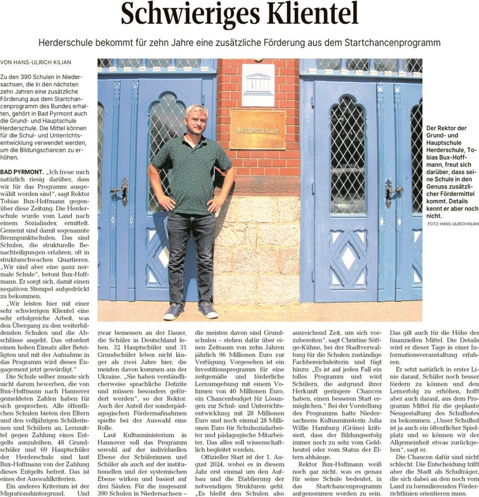 Herderschule in der Zeitung / Allgemein, Neuigkeiten, Pressespiegel / Von Bernd Engel / 13. Juni 2024 © Dewezet, 13.06.2024Beitragsbild: Bild von Racool_studio auf Freepik