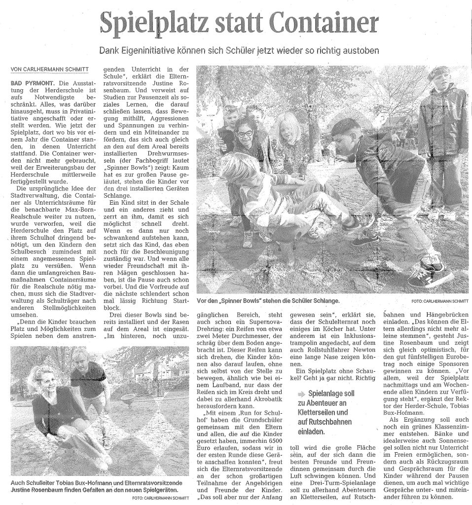 Über die Einweihung der neuen Spielgeräte berichteten die Pyrmonter Nachrichten in dieser Woche.
