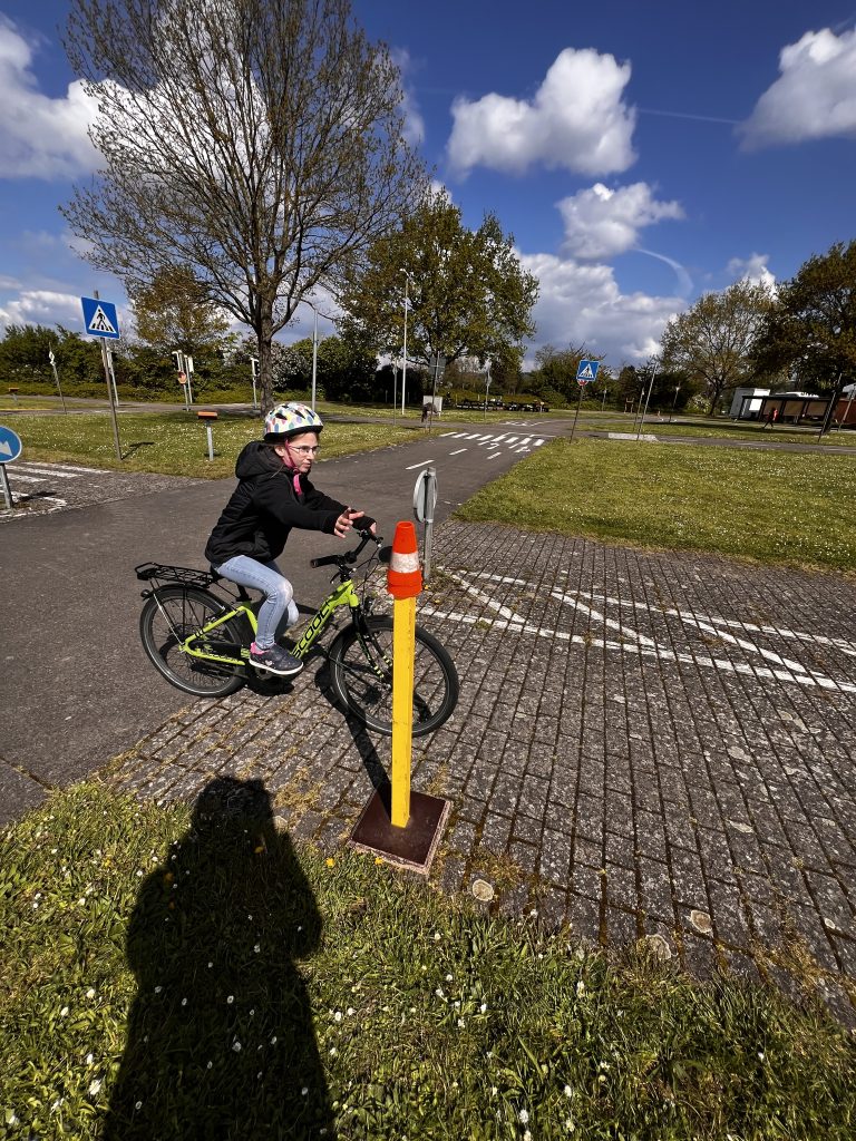 Die Klassen 4a und 4b waren wieder fleißig und übten für die Fahrradprüfung. Beide Klassen fuhren in den Verkehrsgarten nach Hameln und lernten dort die Verkehrsschilder genauer kennen. Das Linksabbiegen sowie das Abfahren eines Parcours waren wirklich lehrreich und hat allen sehr viel Freude gemacht. Der krönende Abschluss war das Schneckenrennen Jeder sollte so langsam wie möglich fahren. Immer zu zweit wurde gestartet. Wer als letzter im Ziel war, kam eine Runde weiter. Bei der Klasse 4b kamen schließlich Viktoria und Elias ins Finale. Es war ein spannendes Rennen. Viktoria siegte nur knapp vor Elias.