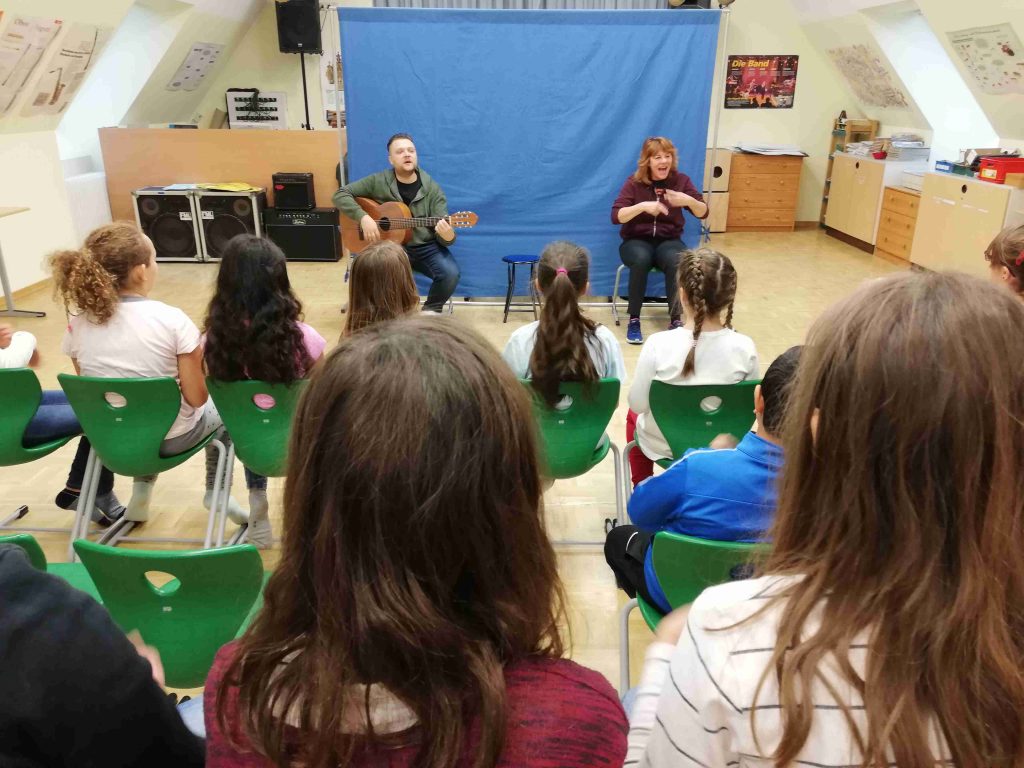 Ein aktuelles Thema brachte die theaterpädagogische werkstatt aus Osnabrück auf die Bühne der Aula der Herderschule. “ Es ist wichtig, über sexuellen Missbrauch zu sprechen und darüber, wie wir uns Hilfe holen können „, so die zwei Schauspieler, die die Dritt- und Viertklässler mit kleinen Stücken behutsam an die Thematik heranführten. Mit dem Körpersong, den die Schüler nach einer kurzen Einführung mitsangen und zu dem im Verlauf der drei Veranstaltungen immer eine Strophe dazu kam, waren die Zuschauer schnell zu begeistern. Das Stück, das seit 25 Jahren in Deutschland und auch im Ausland gespielt wird, sensibilisiert die Kinder für das Thema sexueller Missbrauch und macht ihnen deutlich, dass sie niemals Täter sind.