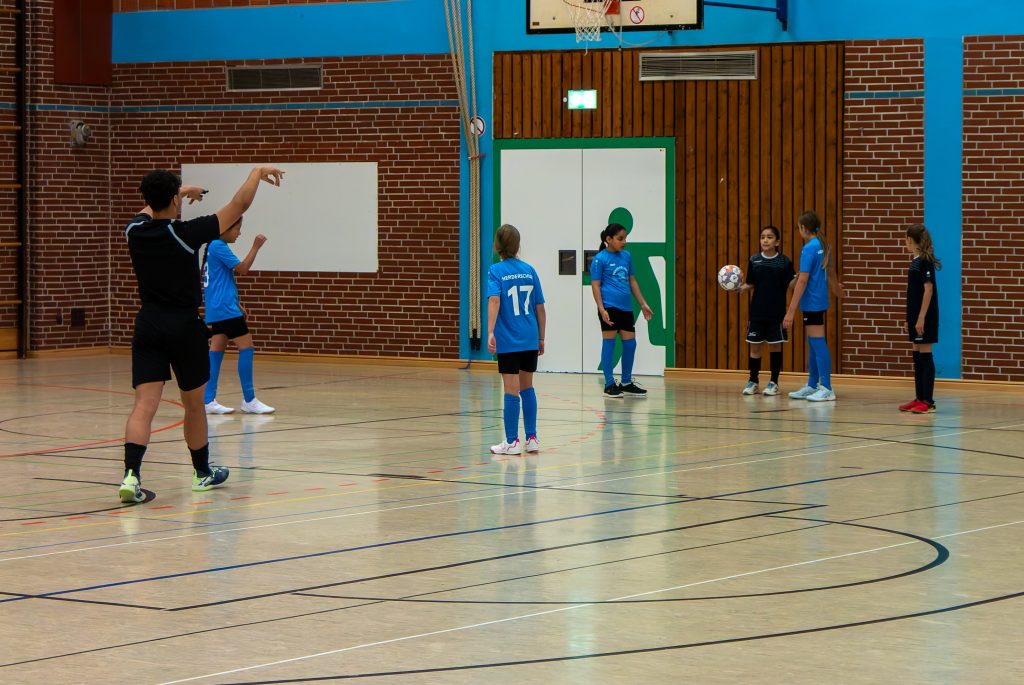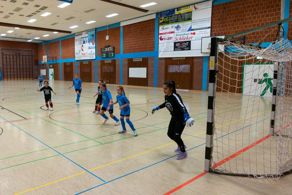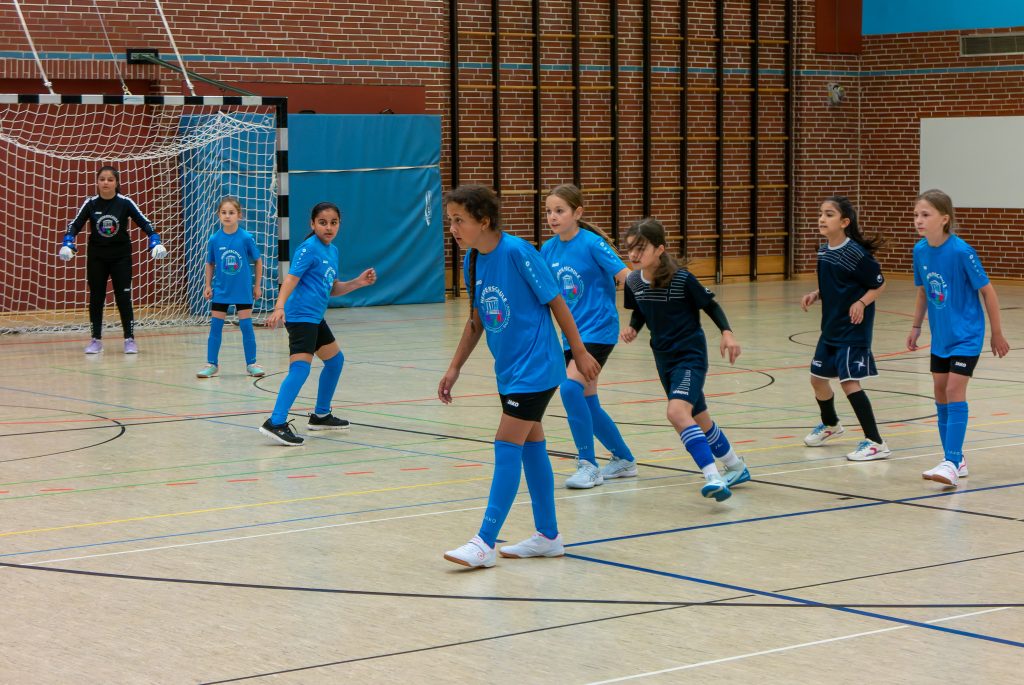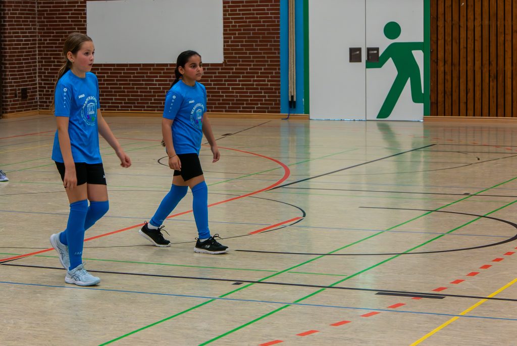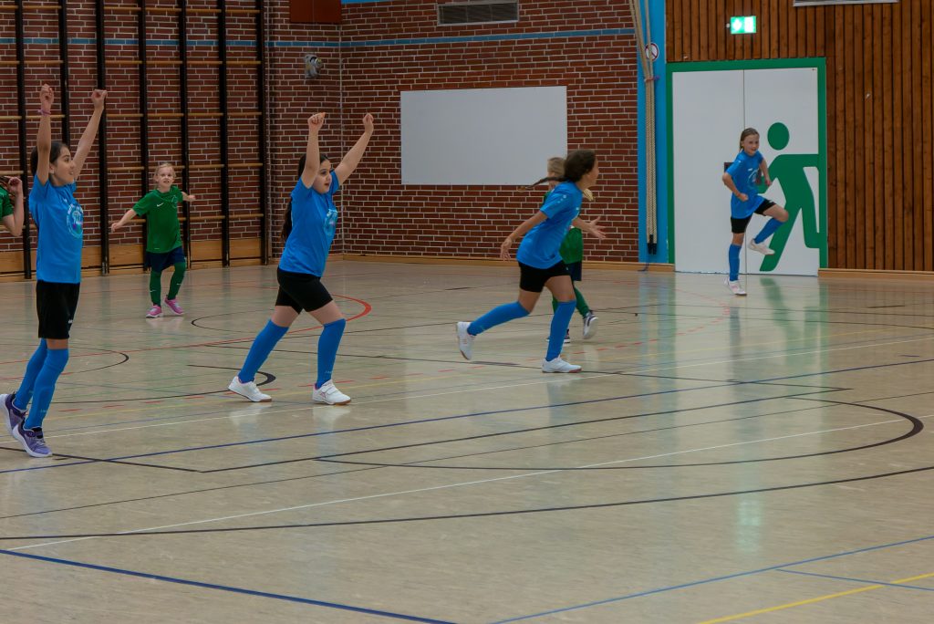 Zum ersten Mal fand ein Fußballturnier nur für Mädchen statt. Die Herderschule hatte dazu die Idee und ihr Interesse an der Ausrichtung dieses Hallenturniers an Malte Fitzner, den Beauftragten Schulfußball, weitergegeben. Nach einer Abfrage kamen fünf Mannschaften zustande. 12 Minuten dauerte jedes Spiel und es wurde nach vereinfachten Regeln gekickt. Die Spielerinnen waren mit Begeisterung dabei, hatten aber teilweise noch Probleme mit dem Regelwerk. Da wurde schon mal nach einem Tor ohne Mittelanstoß weitergespielt, Seitenlinien oder auch die Pfiffe des Schiedsrichters wurden missachet. Positiv fiel hingegen auf, das es praktisch keine Fouls und auch keine „Schwalben“. Das Ganze tat der Spielfreude jedoch keinen Abbruch und auch das Publikum, das aus Klassen der Grundschule bestand, war begeistert. Das Mädchenteam der Herderschule wurde entsprechend angefeuert. Der Schulleiter, Herr Bux-Hoffmann, konnte am Ende der Herderschule zum dritten Platz gratulieren. Ein besonderer Dank geht auch an Melanie Veith, die sich mit ihrem Hauptschulteam um die Verpflegung der Mannschaften kümmerte. Ein Anfang ist gemacht. Bleibt nur zu hoffen, dass es im nächsten Jahr mit einem Hallenturnier für Mädchen weitergeht.