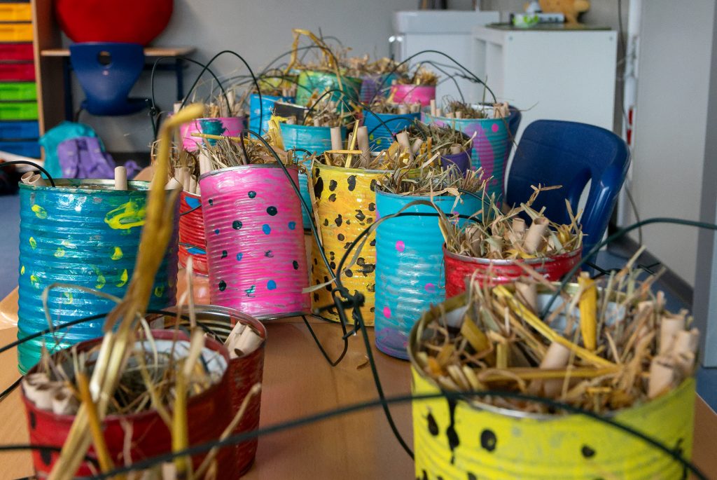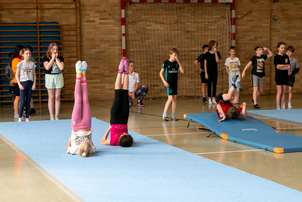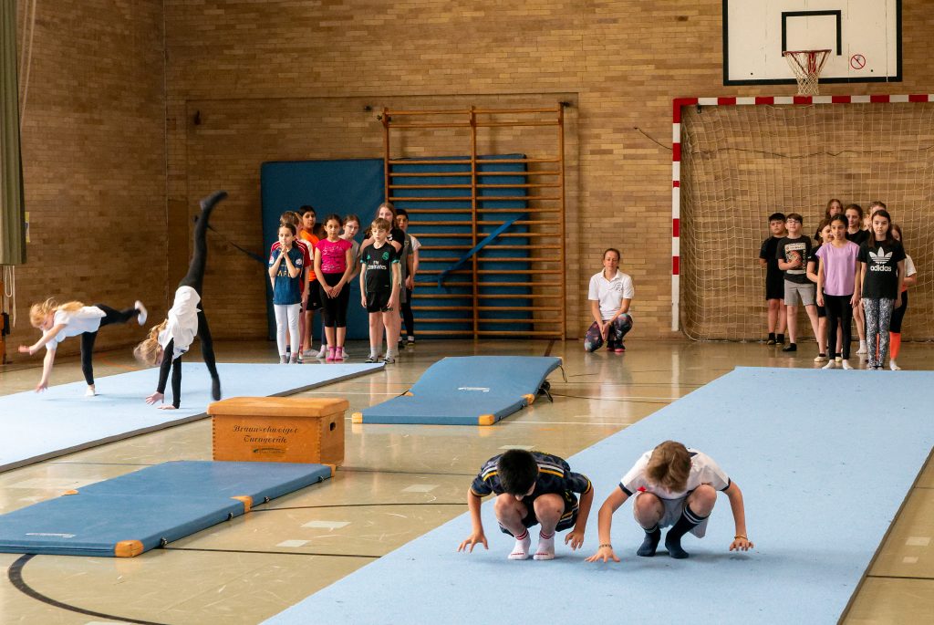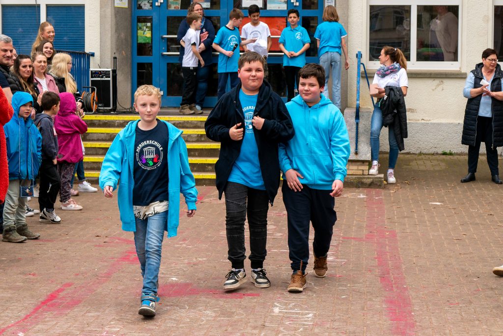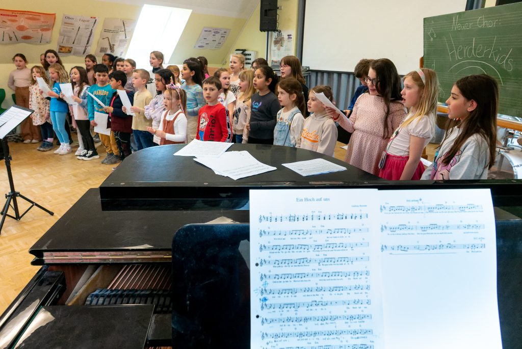 Pünktlich um 14 Uhr eröffnete Herr Bux-Hoffmann als Schulleiter den Tag der offenen Tür. Unter der Leitung von Annika Reichelt zeigten Schülerinnen und Schüler der dritten und vierten Klasse in der Oesdorfer Halle Bodenturnübungen. Knapp 100 Eltern verfolgten die verschiedenen Aktionen und bedachten sie mit reichlich Applaus. Premiere hat Christine Hilbers mit ihrem Schulchor, der erst wenige Wochen alt ist und eine gute Leistung zeigte. Etwa 80 interessierte Eltern und Schüler ließen sich den Musikgenuss nicht entgehen. Für die neue Schulkleidung warben die Mädchen und Jungen der Klasse 4b mit einer Modenschau. Zusammen mit der 3b war die 4b auch bei der Cafeteria im Einsatz. Neben den 20 Klassen, die Hauptschule war in diesem Jahr auch im Einsatz, waren aber auch externe Anbieter wie die Öffis oder die Musikschule, die Instrumente vorstellte, am Programm beteiligt. Zusätzlich zu den reichhaltigen Angeboten der Cafeteria gab es ebenfalls mit einem Bratwurststand herzhafte Sachen. Die vielfältigen Aktionen der verschiedenen Klassen können nicht alle aufgezählt werden. Als Beispiele seien nur genannt: Lernen an Stationen (mit allen Sinnen), Upcycling – Bienenhotels bauen, Pflanzen von Sonnenblumen und Insektenbeeten, Traumfänger und Musikinstrumente basteln, die Unesco-Arbeit und die Geschichte der Herderschule, Kinderschminken, Schlüsselanhänger aus dem 3-D-Drucker, Zirkelblumen oder die Schülerfirma mit ihrem Cocktailangebot.