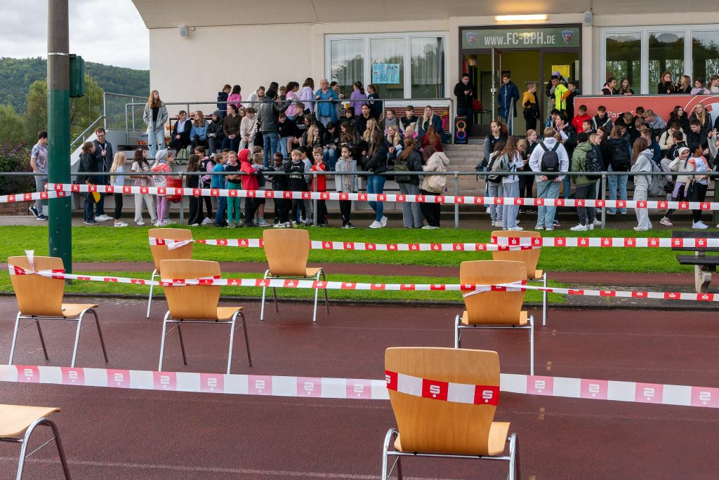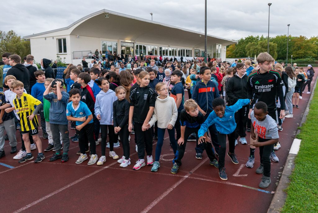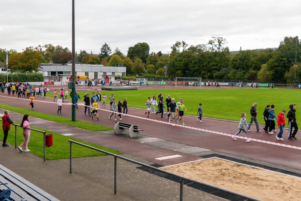 Kurz vor Beginn der Herbstferien stand für die Schülerinnen und Schüler aller weiterführenden Schulen Bad Pyrmonts noch eine schöne Aktion unter Schirmherrschaft der Sparkasse Bad Pyrmont auf dem Programm. Zum 175-jährigen Bestehen hatten sich die Verantwortlichen unter der Leitung von Herrn Drube etwas Besonderes ausgedacht: Einen Sponsorenlauf im Stadion, bei dem für jede absolvierte Runde der Betrag von 30 Cent an die jeweiligen Schulen gespendet werden soll. Dieses Event stellte dann auch eine schöne Möglichkeit dar, dass alle Schulen gemeinsam an diesem Event teilnehmen. Das Läuferfeld der Herderschule wurde hierbei von den Schülerinnen und Schülern des vierten Jahrgangs der Grundschule unterstützt, um die geringere Schülerzahl ein wenig auszugleichen und auch die Zusammengehörigkeit von Grund- und Hauptschulzweig zu festigen.